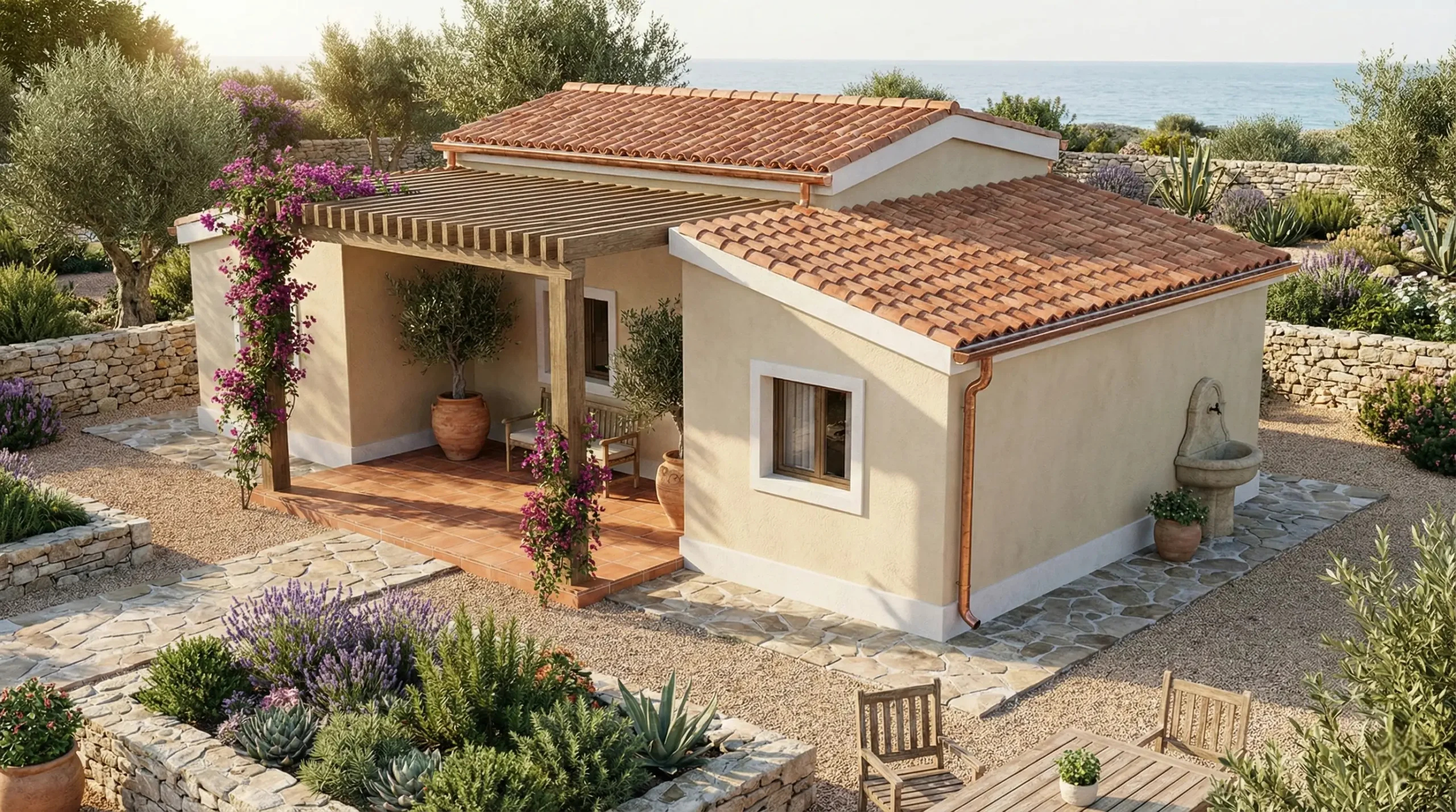 Model Atria svojim jedinstvenim U-tlocrtom redefinira pojam privatnosti na 66m2. Arhitektura kuće osmišljena je u tri zone: dva bočna krila u kojima su smještene spavaće sobe za miran san, te središnji volumen s otvorenim prostorom kuhinje, blagovaonice i dnevnog boravka koji spaja cijelu obitelj. ​Ovakav "zagrljeni" oblik kuće nije slučajan – istureni blokovi spavaćih soba prirodno štite središnju terasu od vjetra i znatiželjnih pogleda, stvarajući intiman vanjski atrij koji postaje produžetak vašeg dnevnog boravka. Dok unutrašnjost nudi pametno iskorišten svaki kvadrat s kupaonicom i open-space zonom, vanjština oduševljava bogatim krovom od crijepa u mediteranskom stilu i autentičnom kamenom fasadom koja skriva vrhunsku STIROTON izolaciju. Atria je dom koji vas čuva – idealan za obitelji koje žele toplinu zajedništva, ali i svoj mirni kutak.