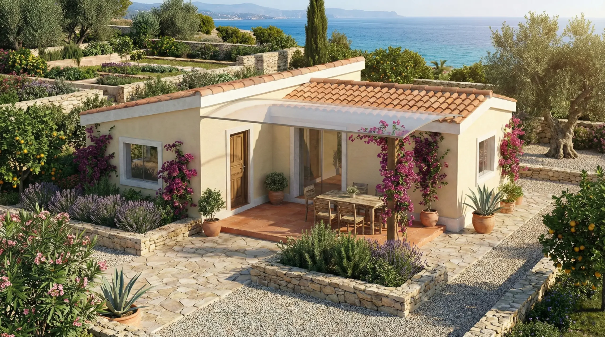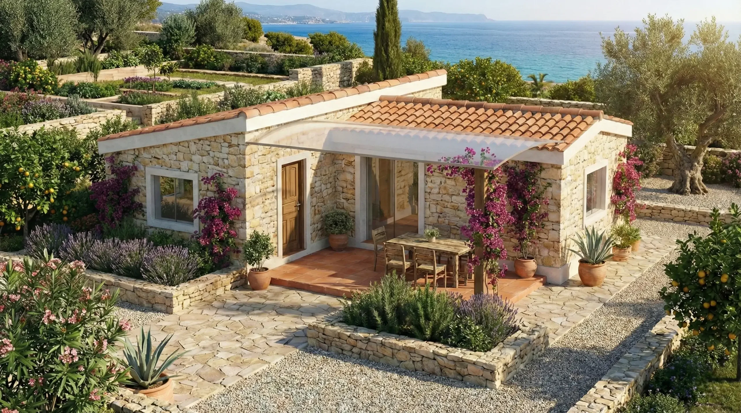Model Flora ističe se svojom dinamičnom arhitekturom i prepoznatljivom lučnom nadstrešnicom koja vašu terasu pretvara u svijetli, natkriveni salon idealan za boravak u svim vremenskim uvjetima. Njezin pametan tlocrt od 60m2 u obliku slova T strateški razdvaja spavaće sobe na suprotne krajeve kuće ("split-bedroom"), osiguravajući ukućanima maksimalnu privatnost i mir. ​Središnji open-space prostor s visokim stropom i velikim staklenim stijenama briše granice prema vrtu, čineći interijer prostranim i okupanim suncem. Iza razigranog krova krije se ozbiljna snaga našeg STIROTON sustava, koji jamči A+ energetsku učinkovitost i vrhunsku izolaciju. Flora je savršen izbor za one koji traže funkcionalnost s modernim vizualnim potpisom.